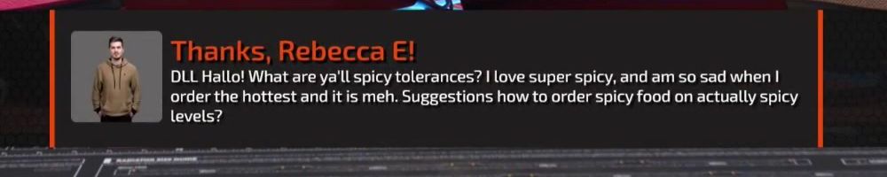 Thanks, Rebecca E! DLL Hallo! What are ya'll spicy tolerances? I love super spicy, and am so sad when I order the hottest and it is meh. Suggestions how to order spicy food on actually spicy levels?