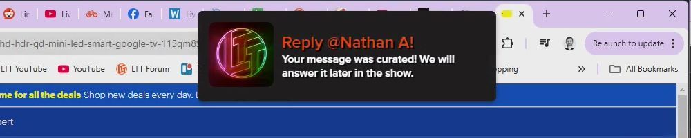 Reply @Nathan A! Your message was curated! We will answer it later in the show.
