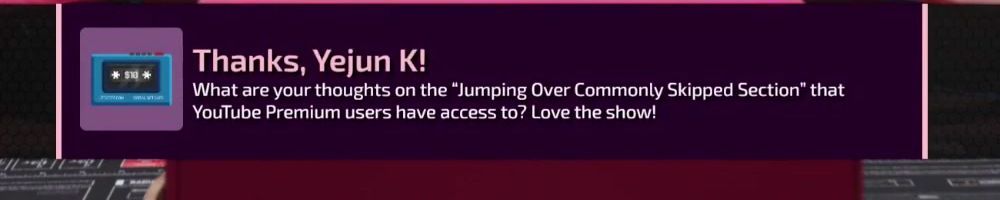 Thanks, Yejun K! What are your thoughts on the “Jumping Over Commonly Skipped Section” that YouTube Premium users have access to? Love the show!
