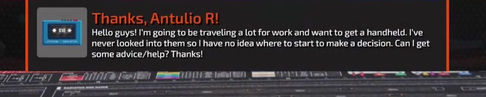 Thanks, Antulio R! Hello guys! I'm going to be traveling a lot for work and want to get a handheld. I've never looked into them so I have no idea where to start to make a decision. Can I get some advice/help? Thanks!