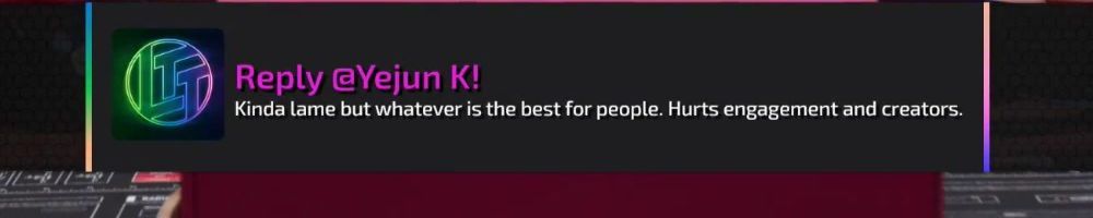 Reply @Yejun K! Kinda lame but whatever is the best for people. Hurts engagement and creators.