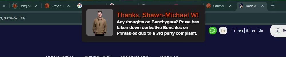 Thanks, Shawn-Michael W! Any thoughts on Benchygate? Prusa has taken down derivative Benchies on Printables due to a 3rd party complaint,