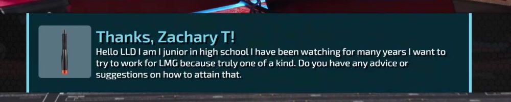 Thanks, Zachary T! Hello LLD I am I junior in high school | have been watching for many years | want to try to work for LMG because truly one of a kind. Do you have any advice or suggestions on how to attain that.