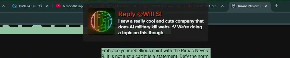 Reply @Will S! I saw a really cool and cute company that does AI military kill webs. :V We're doing a topic on this though