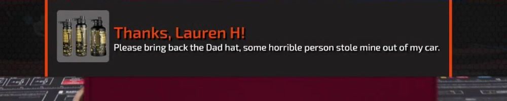 Thanks, Lauren H! Please bring back the Dad hat, some horrible person stole mine out of my car.