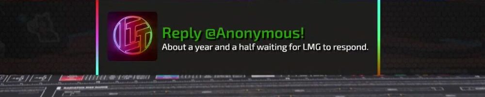 Reply @Anonymous! About a year and a half waiting for LMG to respond.
