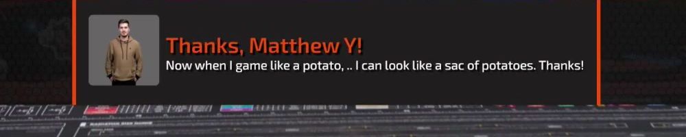 Thanks, Matthew Y! Now when I game like a potato, .. I can look like a sac of potatoes. Thanks!