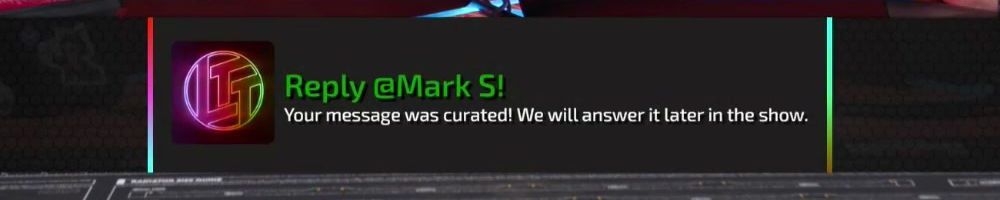 Reply @Mark S! Your message was curated! We will answer it later in the show.