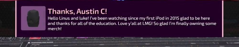 Thanks, Austin C! Hello Linus and luke! I've been watching since my first iPod in 2015 glad to be here and thanks for all of the education. Love y'all at LMG! So glad I'm finally owning some merch!