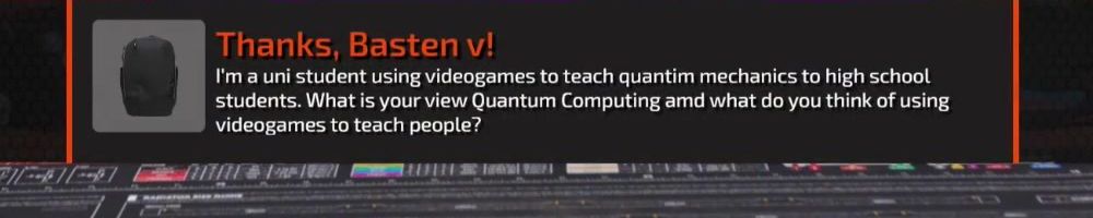 Thanks, Basten v! I'm a uni student using videogames to teach quantim mechanics to high school students. What is your view Quantum Computing amd what do you think of using videogames to teach people?