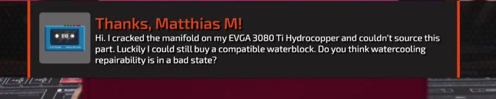 Thanks, Matthias M! Hi. I cracked the manifold on my EVGA 3080 Ti Hydrocopper and couldn't source this part. Luckily I could still buy a compatible waterblock. Do you think watercooling repairability is in a bad state?