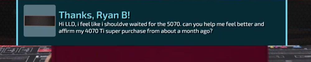 Thanks, Ryan B! Hi LLD, i feel like i shouldve waited for the 5070. can you help me feel better and affirm my 4070 Ti super purchase from about a month ago?