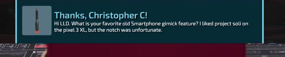 Thanks, Christopher C! Hi LLD. What is your favorite old Smartphone gimick feature? I liked project soli on the pixel 3 XL, but the notch was unfortunate.