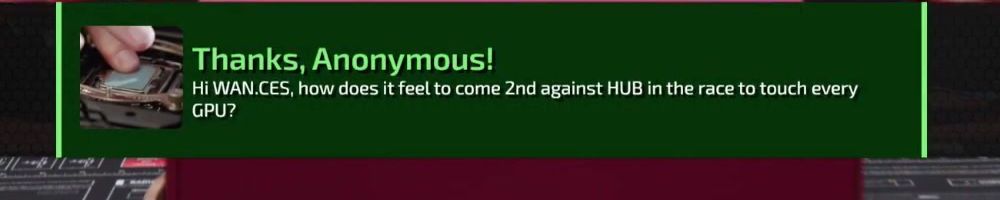 Thanks, Anonymous! Hi WAN.CES, how does it feel to come 2nd against HUB in the race to touch every GPU?