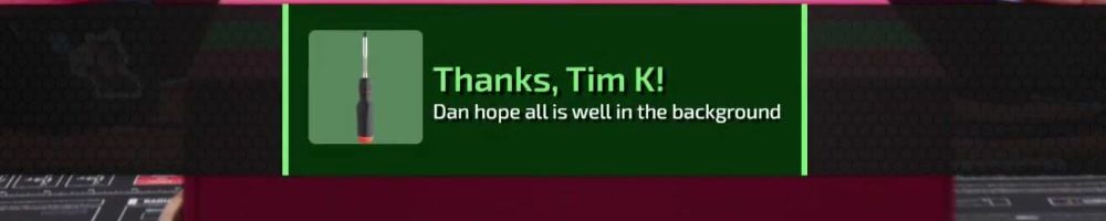 Thanks, Tim K! Dan hope all is well in the background