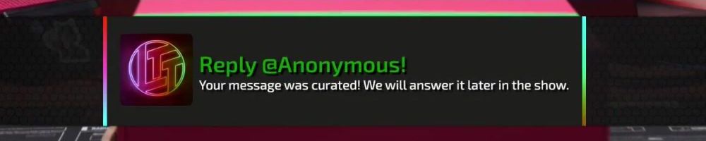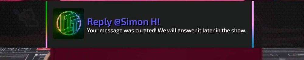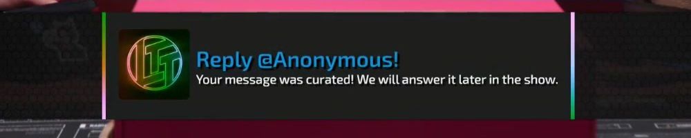 Reply @Anonymous! Your message was curated! We will answer it later in the show.