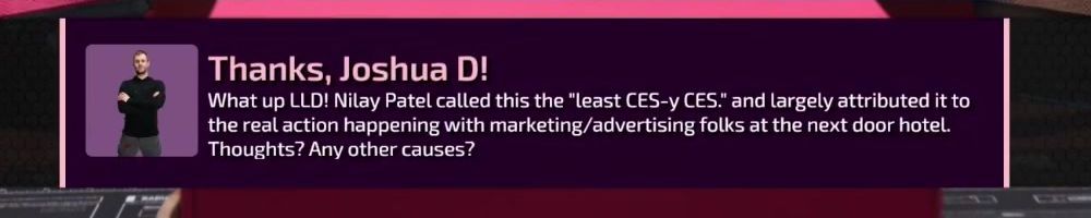 Thanks, Will S! Hey guys! What was the coolest tech that you saw at CES? What are you guys excited about?