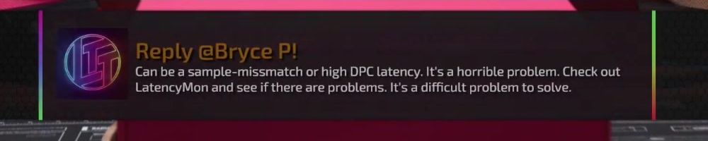 Reply @Bryce P! Can be a sample-mismatch or high DPC latency. It's a horrible problem. Check out LatencyMon and see if there are problems. It's a difficult problem to solve.