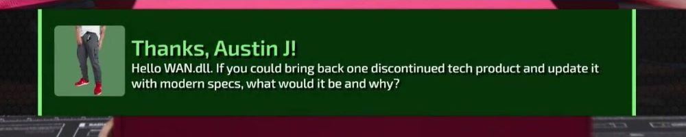 Thanks, Austin J! Hello WAN.dLL. If you could bring back one discontinued tech product and update it with modern specs, what would it be and why?