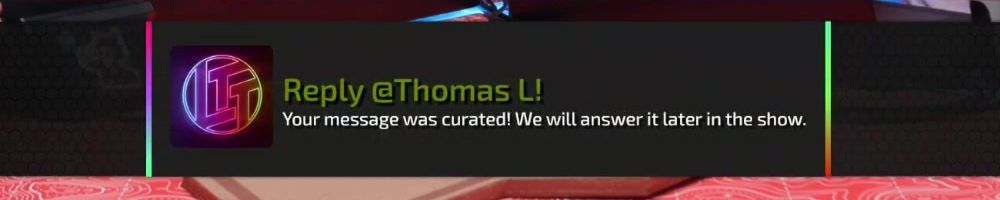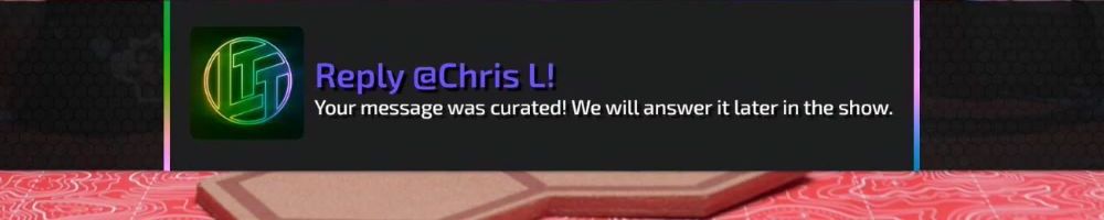 Reply @Chris L! Your message was curated! We will answer it later in the show.