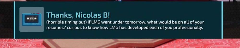 Thanks, Nicolas B! (horrible timing but) if LMG went under tomorrow, what would be on all of your resumes? curious to know how LMG has developed each of you professionally.