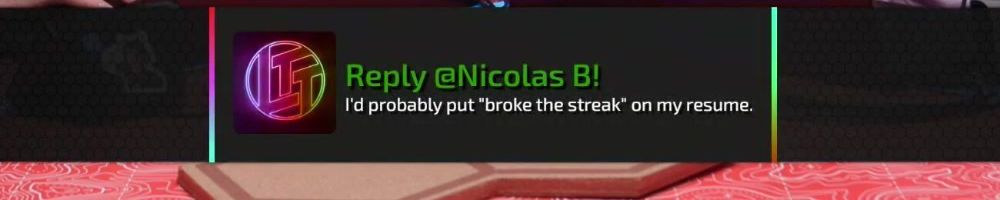 Reply @Nicolas B! I'd probably put "broke the streak” on my resume.