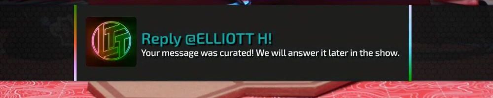 Reply @ELLIOTT H! Your message was curated! We will answer it later in the show.