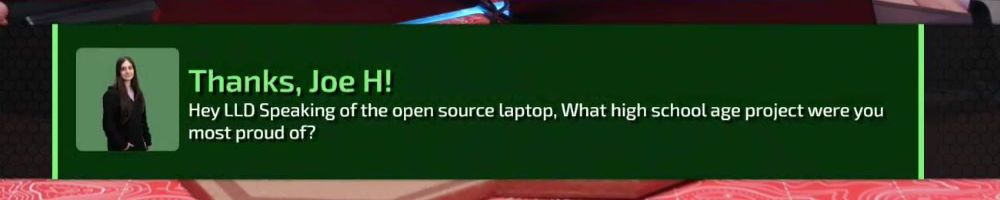Thanks, Joe H! Hey LLD Speaking of the open source laptop, What high school age project were you most proud of?