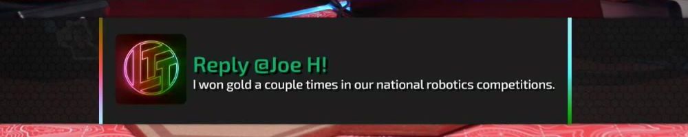 Reply @Joe H! I won gold a couple times in our national robotics competitions.