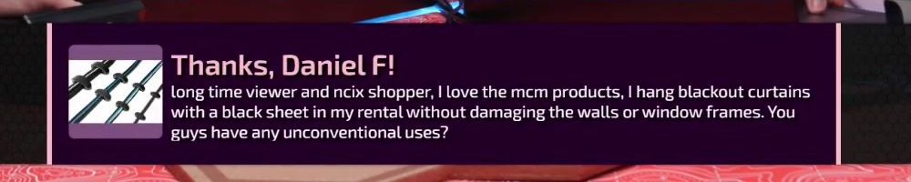 Thanks, Daniel F! long time viewer and ncix shopper, I love the mcm products, I hang blackout curtains with a black sheet in my rental without damaging the walls or window frames. You guys have any unconventional uses?