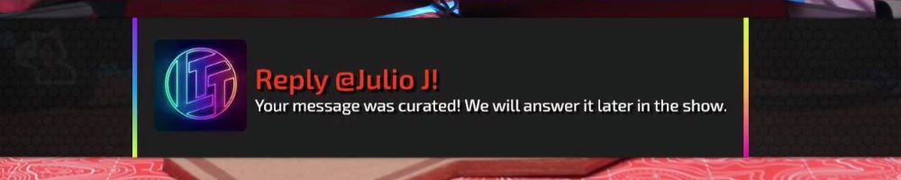 Reply @Julio J! Your message was curated! We will answer it later in the show.