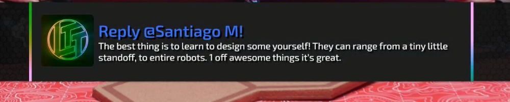Reply @Santiago M! The best thing is to learn to design some yourself! They can range from a tiny little standoff, to entire robots. 1 off awesome things it's great.