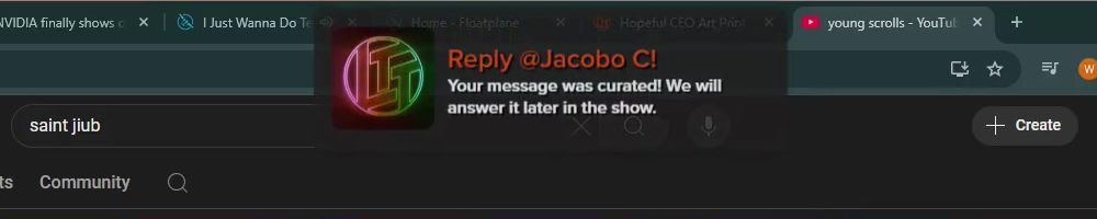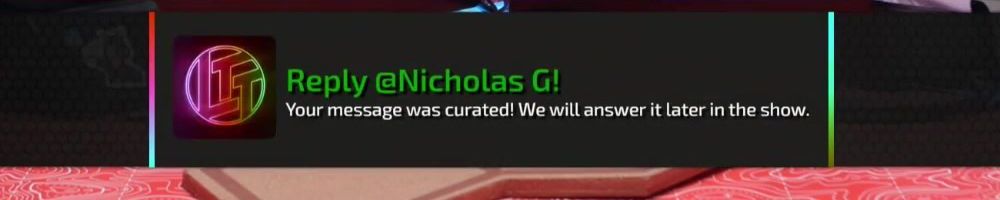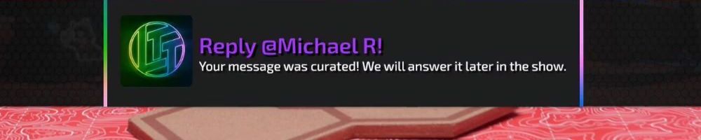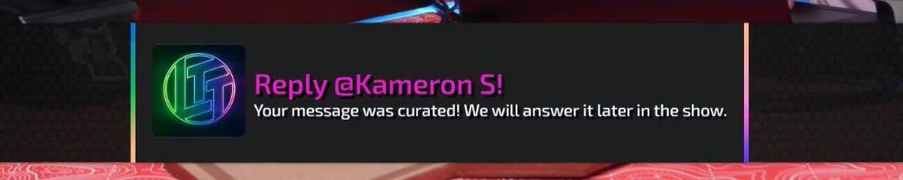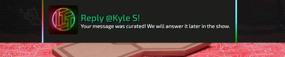 Reply @Kyle S! Your message was curated! We will answer it later in the show.