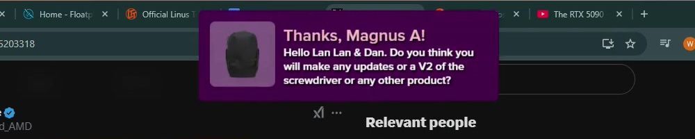 Thanks, Magnus A! Hello Lan Lan & Dan. Do you think you will make any updates or a V2 of the screwdriver or any other product?