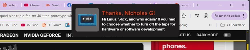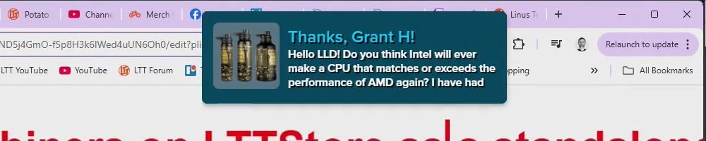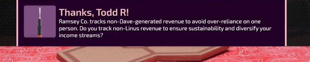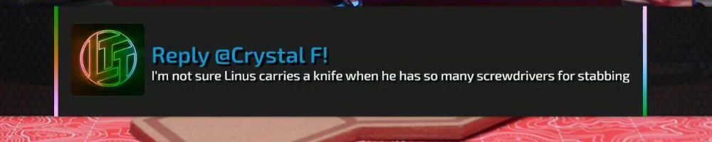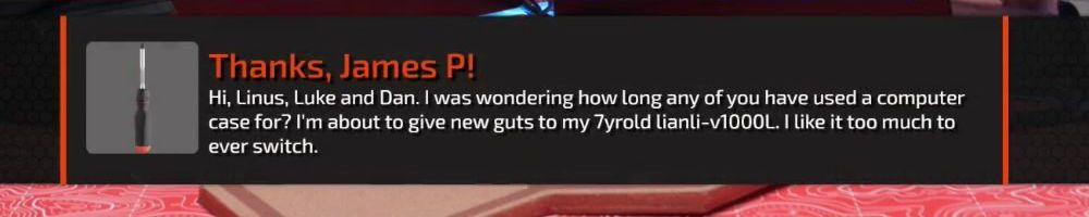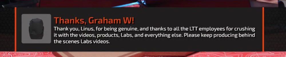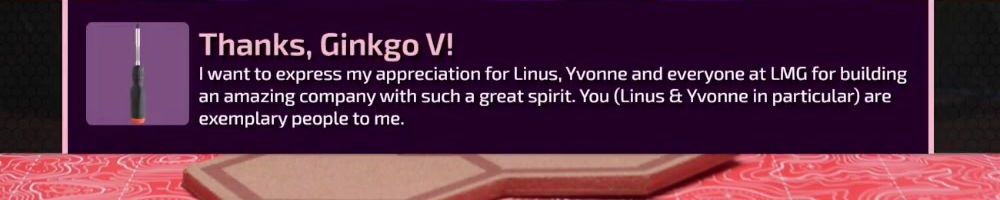 Thanks, Ginkgo V! I want to express my appreciation for Linus, Yvonne and everyone at LMG for building an amazing company with such a great spirit. You (Linus & Yvonne in particular) are exemplary people to me.