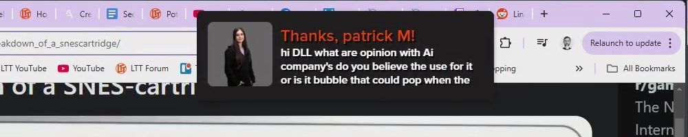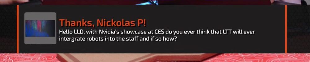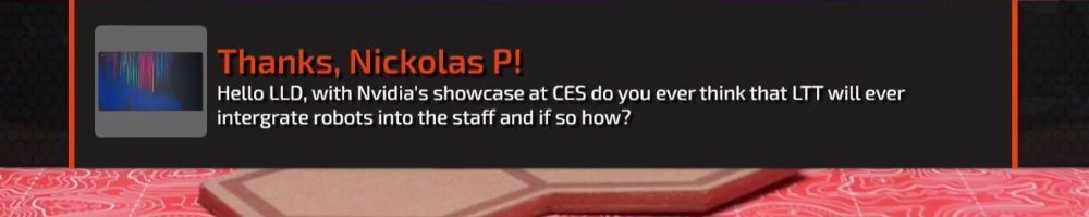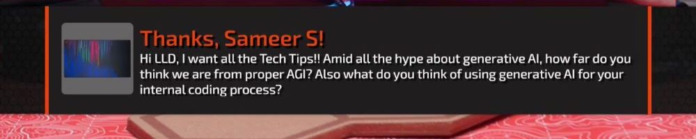 Thanks, Sameer S! Hi LLD, I want all the Tech Tips!! Amid all the hype about generative AI, how far do you think we are from proper AGI? Also what do you think of using generative AI for your internal coding process?