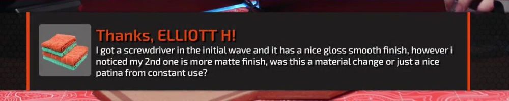 Thanks, ELLIOTT H! I got a screwdriver in the initial wave and it has a nice gloss smooth finish, however i noticed my 2nd one is more matte finish, was this a material change or just a nice patina from constant use?