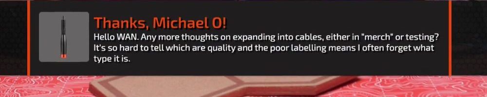 Thanks, Caleb H! Hi EL EL DEE, Any updates/leaks on the LTT Cables?