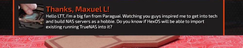 Thanks, Maxuel L! Hello LTT, I'm a big fan from Paraguai. Watching you guys inspired me to get into tech and build NAS servers as a hobbie. Do you know if Hex0S will be able to import existing running TrueNAS into it?