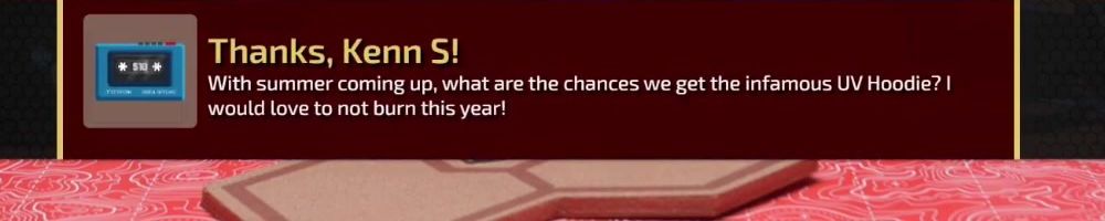 Thanks, Kenn S! With summer coming up, what are the chances we get the infamous UV Hoodie? I would love to not burn this year!