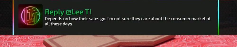 Reply @Lee T! Depends on how their sales go. I'm not sure they care about the consumer market at all these days.