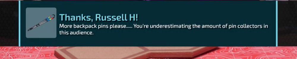 Thanks, Russell H! More backpack pins please.... You're underestimating the amount of pin collectors in this audience.