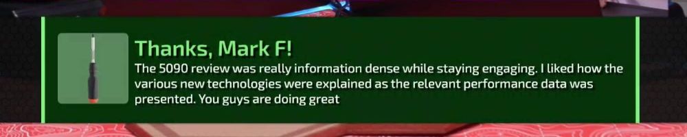 Thanks, Mark F! The 5090 review was really information dense while staying engaging. I liked how the various new technologies were explained as the relevant performance data was presented. You guys are doing great