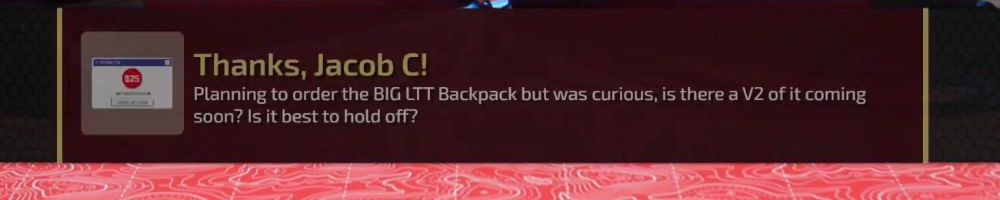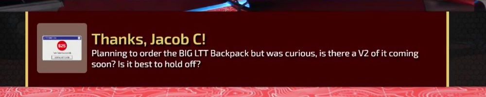 Thanks, Jacob C! Planning to order the BIG LTT Backpack but was curious, is there a V2 of it coming soon? Is it best to hold off?