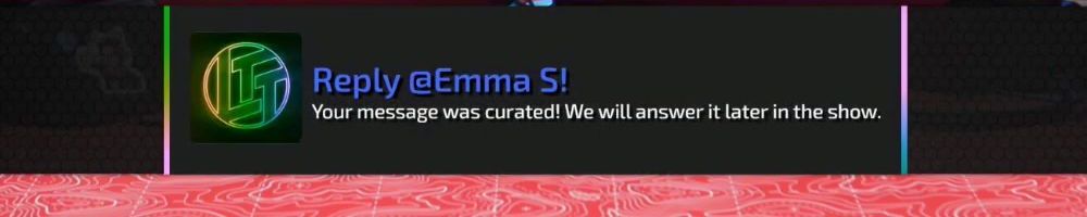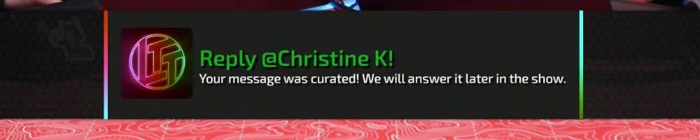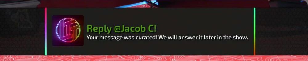 Reply @Jacob C! Your message was curated! We will answer it later in the show.