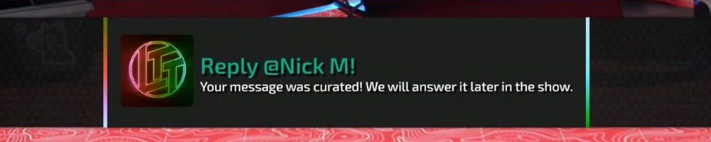 Reply @Nick M! Your message was curated! We will answer it later in the show.