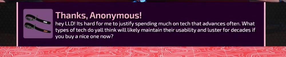 Thanks, Anonymous! hey LLD! Its hard for me to justify spending much on tech that advances often. What types of tech do yall think will likely maintain their usability and luster for decades if you buy a nice one now?
