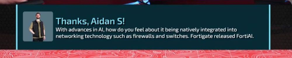 Thanks, Aidan S! With advances in AI, how do you feel about it being natively integrated into networking technology such as firewalls and switches. Fortigate released FortiAI.