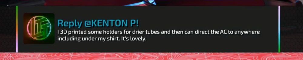 Reply @KENTON P! I 3D printed some holders for drier tubes and then can direct the AC to anywhere including under my shirt. It's lovely.