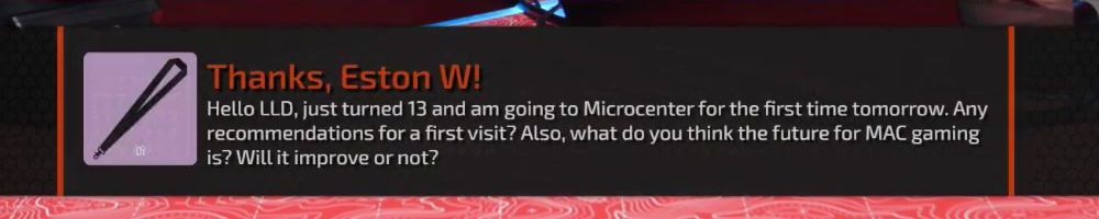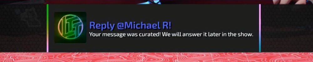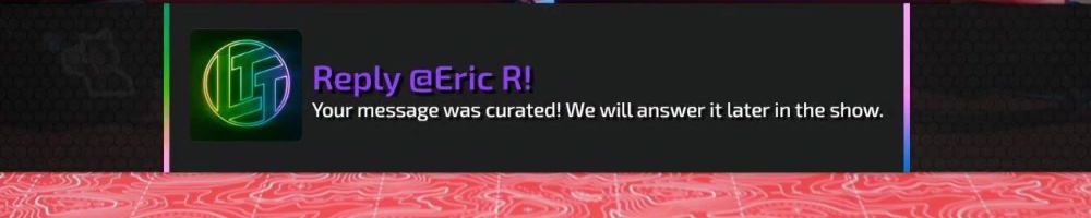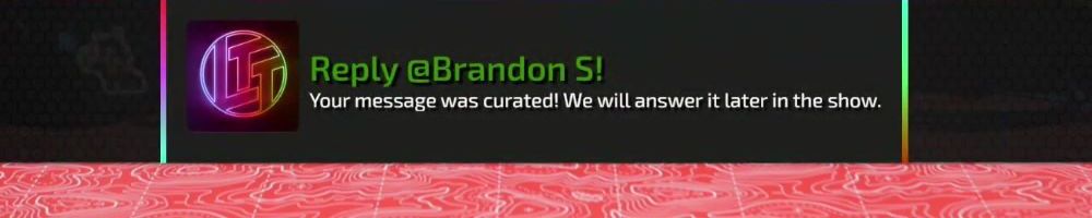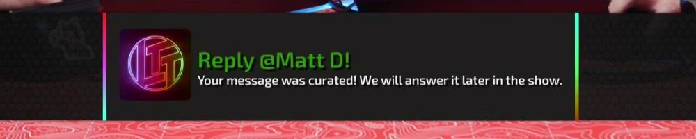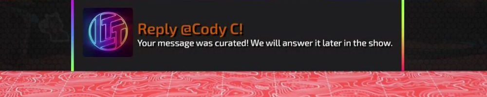 Reply @Cody C! Your message was curated! We will answer it later in the show.